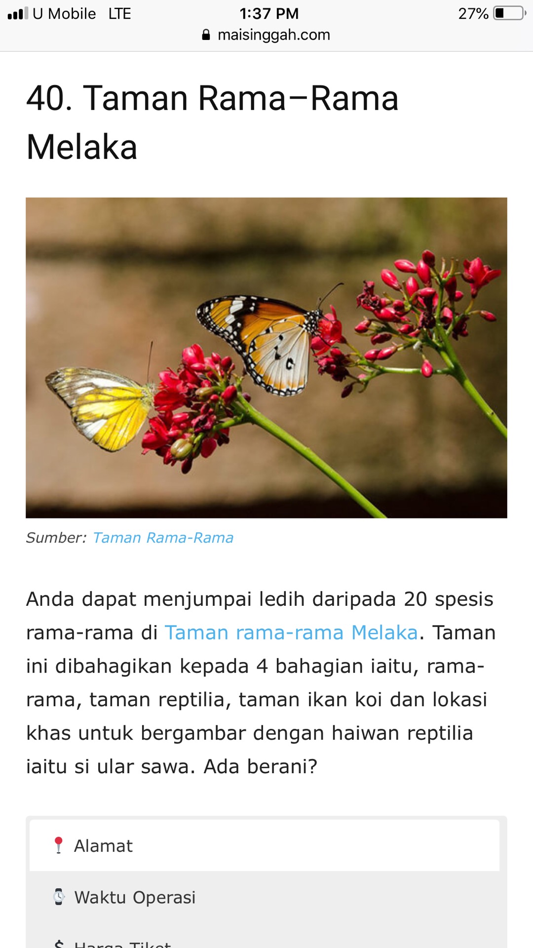 Waktu operasi taman burung melaka. Taman rama rama dan reptilia melaka lebuh ayer keroh melaka tel. Jika anda ingin melihat pelbagai jenis burung taman burung melaka merupakan tempat yang paling sesuai. Taman burung ini merupakan salah sebuah tempat menarik di melaka yang wajib dikungjungi. Belum ada pengumuman tentang tarikh beroperasi.